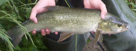 Rapfen aus der Lippestrecke des ASV Werne - Lippetal Der Rapfen ist einer der größten Weißfische in NRW und kann Längen bis zu einem Meter erreichen. Der Fisch lebt in größeren Fließgewässern in der Freiwasserzone. Ältere Fische leben als Raubfische von anderen kleineren Fischen. Jungfische leben als Schwarmfische zusammen. Der Rapfen laicht von April bis Juni. Da die Bestände nicht gefährdet sind, gibt es in NRW kein Mindestmaß und keine Schonzeit. Das Fleisch ist schmackhaft aber sehr grätenreich, so dass es sich gut zu Fischfrikadellen verarbeiten lässt. |