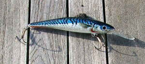 Wobbler Wobbler sind Kunstköder, die von der Form her Fischen nachempfunden sind. Diese Köder werden sehr häufig aus Holz oder auch zum Teil aus Kunststoff gefertigt. Je nach Größe sind Wobbler mit einem oder mehreren Drillingshaken ausgestattet. Es gibt einteilige und mehrteilige Wobbler. Oft werden Wobbler von Form und Farbe Hechten, Barschen oder Weißfischen nachempfunden. Es gibt aber auch viele Wobbler mit Phantasiefarben. Dabei handelt es sich häufig um sehr grelle Farben. Der Wobbler soll den Raubfisch nicht nur durch taumelnde Bewegung und durch Erzeugung von Druckwellen zum Anbiss reizen, sondern auch durch sein farbliches Aussehen. Um Raubfische zum Anbiss zu verleiten, sind einige Wobblermodelle auch mit Rasselkugeln im Inneren ausgestattet. Dadurch erzeugen diese Wobbler unter Wasser Geräusche. Wobbler gibt es als schwimmende, schwebende und sinkende Modelle. Die meisten Wobbler sind mit einer Tauchschaufel ausgestattet. Wobbler mit großen flachen Schaufeln laufen tiefer als Wobbler mit kleinen, steil angestellten Schaufeln. Für das Angeln im Oberflächenbereich werden Popper, das sind Wobbler ohne Tauchschaufel, verwendet.